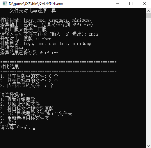 复制代码 设置 output_diff=true 后,会在程序所在目录生成diff.txt,内容示例如下: